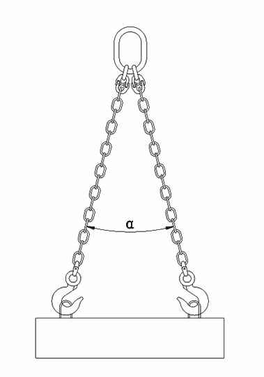 1、使用多肢链条索具起吊时,链条夹角一般应不超过90度,最大不得超过120度。