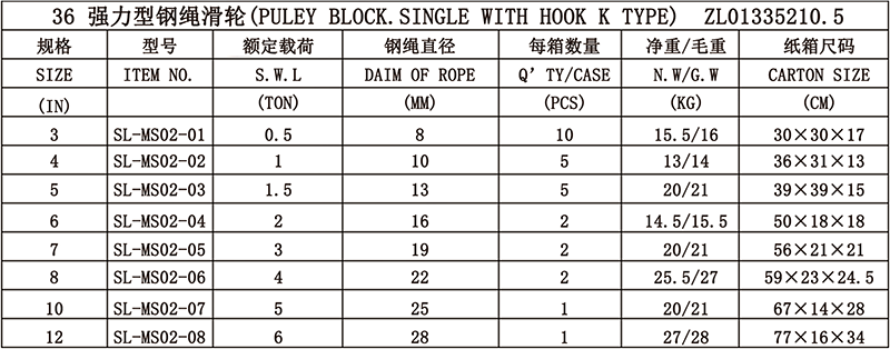 1、可适用于钢丝绳或绳索的拉吊。 2、此滑车开口设计,可侧面放入钢丝绳,省时省力。 3、采用铸钢轮,经久耐用。 4、轴套采用纯铜套,并有注油孔,保养方便。